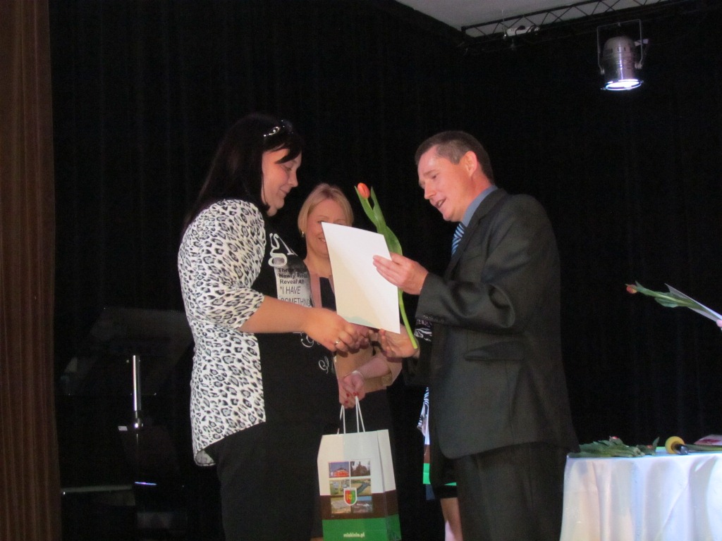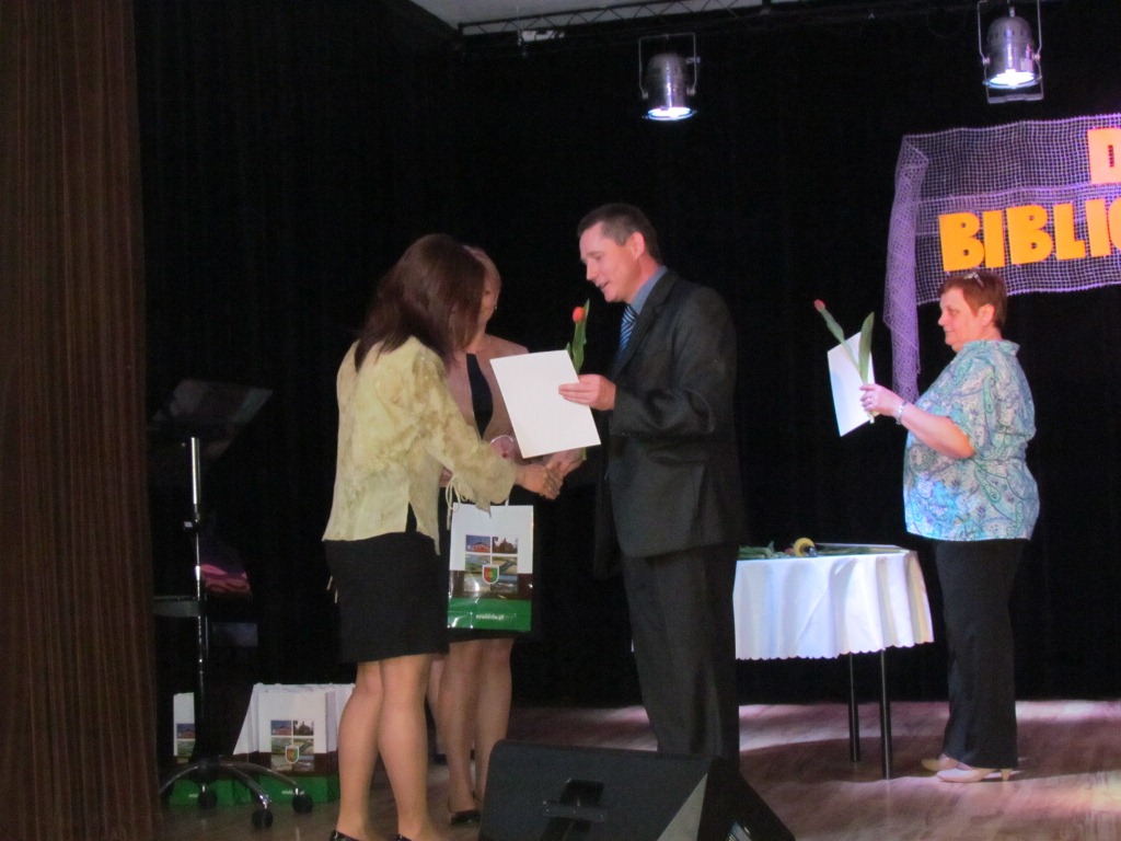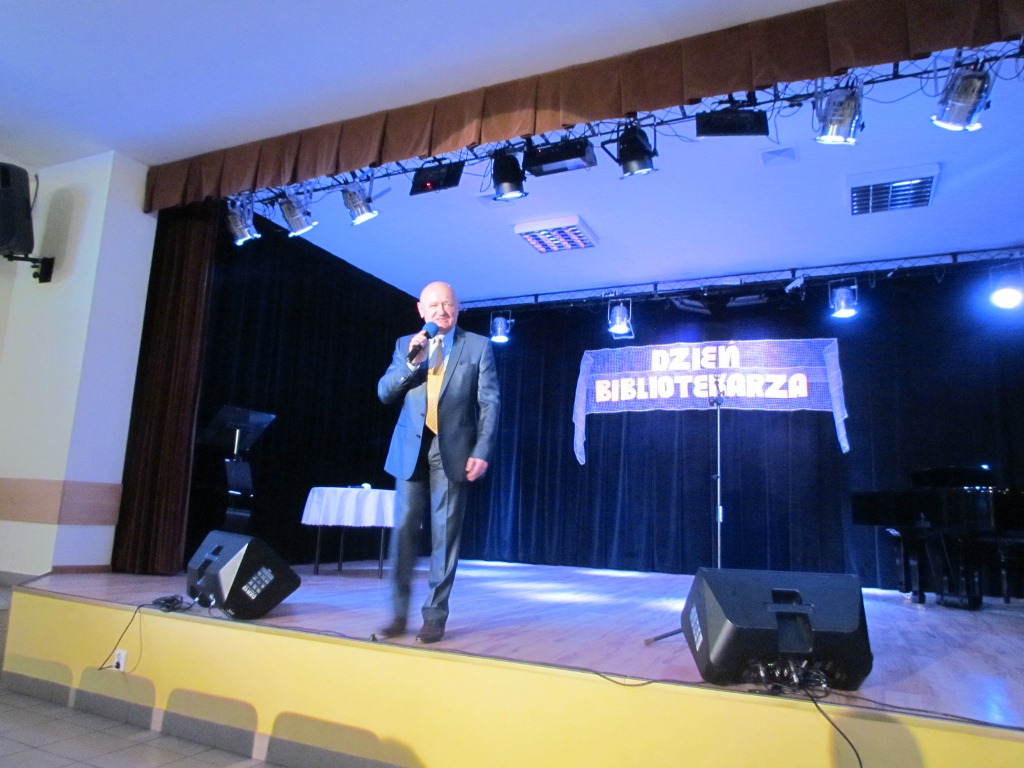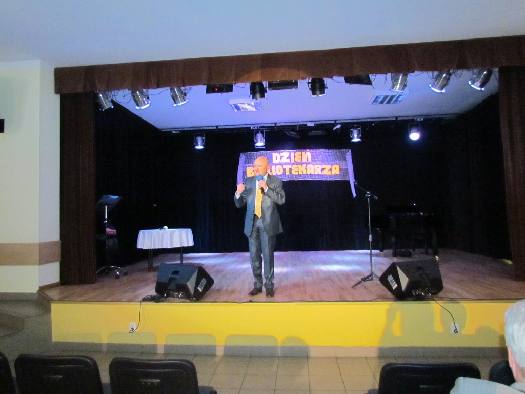 W dniu 8 maja 2014r. w Sali widowiskowej Samorządowego Ośrodka Kultury w Miękini odbył się uroczysty „Dzień Bibliotekarza”, na którym mieliśmy zaszczyt gościć bibliotekarzy bibliotek publicznych i szkolnych z powiatu średzkiego oraz mieszkańców gminy Miękinia. Uroczystość rozpoczęliśmy od wręczenia bibliotekarzom podziękowań, kwiatów oraz gadżetów promocyjnych gminy Miękinia, następnie na scenie wystąpił Pan Maciej Damięcki – polski aktor filmowy i teatralny, z recitalem kabaretowym. Po występie uczestnicy imprezy mieli przerwę na kawę i ciasto po czym przeszli do zwiedzania Winnicy Jaworek.