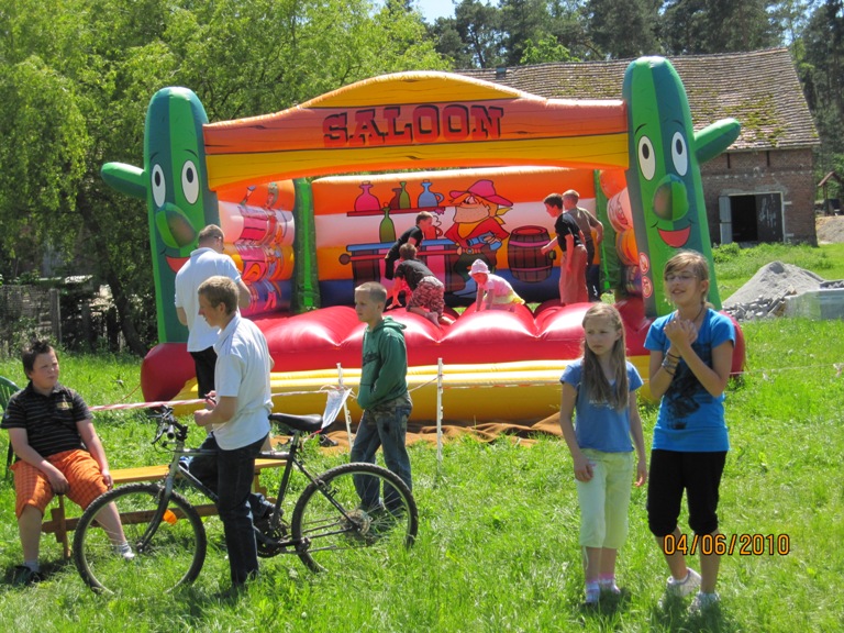 Szczególnym powodzeniem cieszył się: - dmuchany zamek, - basen z kulkami, - krowa do dojenia. Dzieci otrzymały napoje, ciastka, cukierki, lody oraz pieczoną kiełbaskę. Nasze pociechy bawiły się wspaniale, a do domu wracały w dobrym humorze.