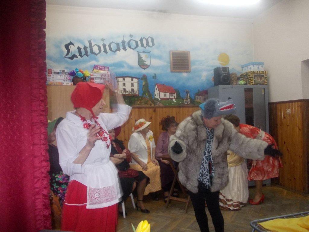 Dnia 9 marca 2014r. o godz. 15.00 z okazji Dnia Kobiet gościliśmy na Świetlicy Wiejskiej Panie z Lubiatowa i Zaboru Małego. Wszystkie Panie tradycyjnie zostały przywitane kwiatkiem - zadbał o to nasz Sołtys. Atrakcją tegorocznej imprezy był występ Pań Seniorek z Uniwersytetu Trzeciego Wieku z przedstawieniem teatralnym "Czerwony Kapturek...". Dziękujemy Paniom Seniorkom za dobrą zabawę.