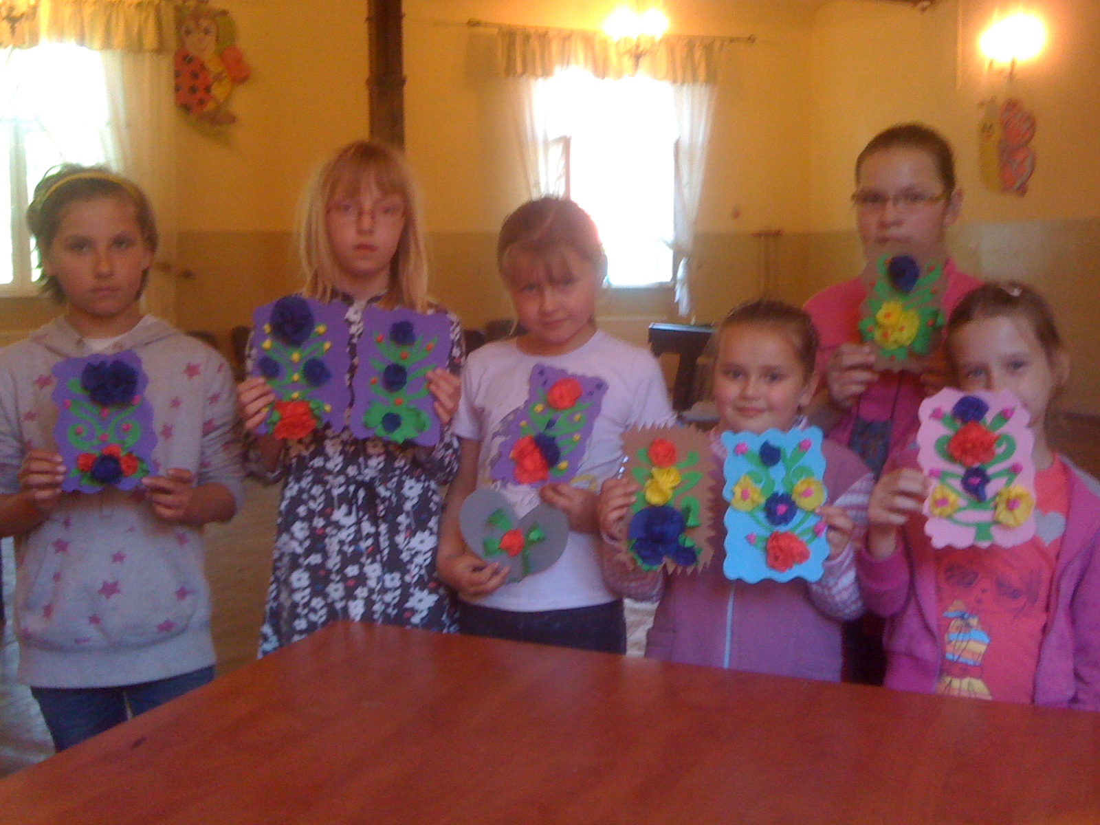 Dzieci z Białkowa podczas zajęć plastycznych na świetlicy wiejskiej wykonały kartki tematyczne na Dzień Mamy. Każda z prac została zrobiona ze starannością. Dzieci były bardzo zadowolone, że wręczą swoim Mamom własnoręcznie wykonane prezenty.