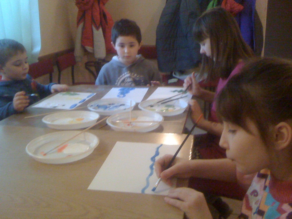 W pierwszym tygodniu ferii na świetlicy w Krępicach wiele się działo. Podczas zajęć plastycznych dzieci malowały obrazki o tematyce ferii zimowych, uczyły się również mieszać farby i tworzyć całą paletę barw z podstawowych kolorów, oprócz tego wykonywały duże serca, które najpierw były szkicowane, wycinane, malowane, a następnie dekorowane brokatem. Wykonane prace udekorowały dużą salę świetlicy. Dzieci bawiły się także gipsem. Podczas zajęć manualnych zostały wykonane odlewy masek i serduszek, które następnie pomalowano farbami akrylowymi.