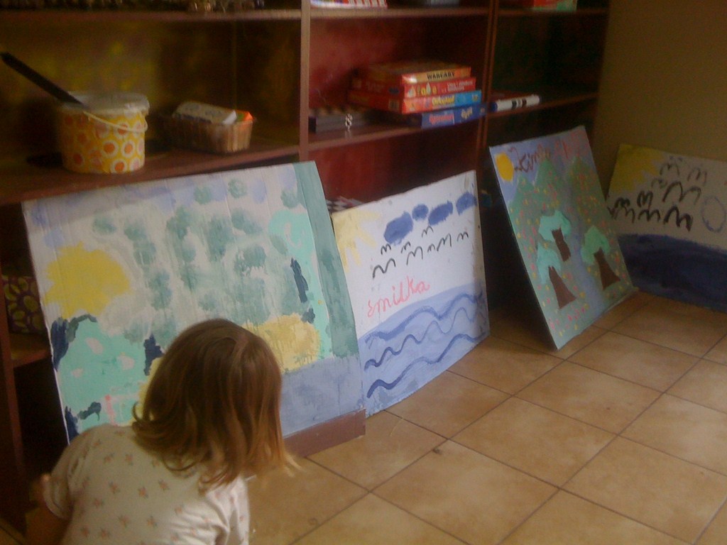 - Dzieci i młodzież z Białkowa wraz z instruktorką świetlicy wykonały dla przedszkola w Miękini obraz składający się z 4 dużych kartonów. Praca będzie wykorzystana na zakończenie roku przedszkolnego jako scenografia do przedstawienia.