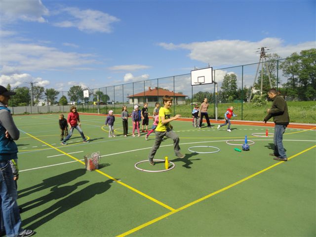 Pogoda niestety nam nie sprzyjała, ale dzieci i młodzież bawili się doskonale. Niektóre konkurencje wykonywane na czas rozbudziły entuzjazm w młodzieży, która wraz z dziećmi chętnie uczestniczyła w zabawach.