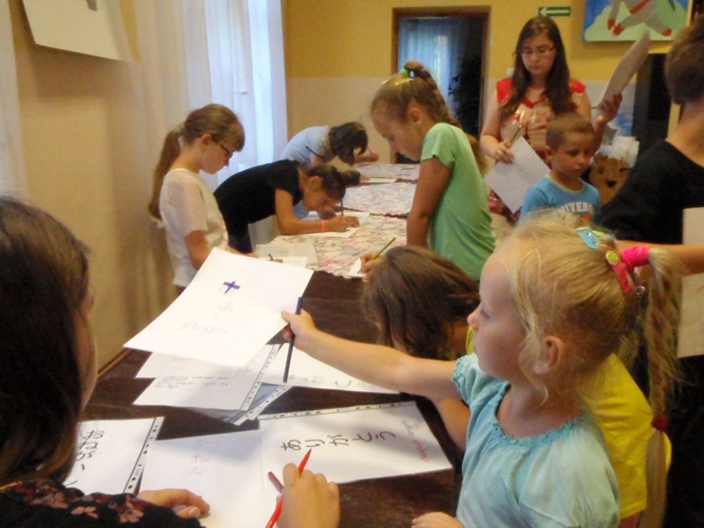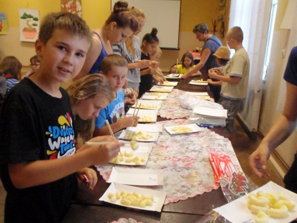 (około 50 osób) były dzieci, młodzież oraz osoby dorosłe z Księginic, Zaboru Wielkiego, Białkowa i Miękini. Spotkanie rozpoczęło się informacją o Japonii przygotowaną i odczytaną przez młodzież z Księginic, po której nastąpiła prezentacja slajdów z Tokio, Kioto, Nagoi, Yokohamy i niewielkiego miasta Tottori. Uczestnicy z wielkim zainteresowaniem oglądali wnętrza domów Japończyków oraz zdjęcia wykonane w małej japońskiej wsi położonej w górach Chugoku. Dzieci i młodzież uczestniczyły w konkursie jedzenia pałeczkami, który poprzedzony był krótkim instruktażem. Podczas degustacji sushi futomaki poznali smaki kuchni japońskiej. Podjęli próbę samodzielnego wykonania sushi. Nie zabrakło również nauki pisania po japońsku prostych słów pismem katakana. Spotkanie wzbogaciły dekoracje świetlicy wykonane przez dzieci i młodzież z Księginic, wystawa eksponatów z Japonii oraz muzyka japońska. Spotkanie mogło się odbyć dzięki wsparciu Gminy Miękinia, za które serdecznie dziękujemy.