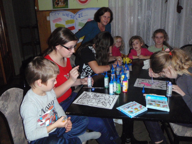 W dniach 12,13 i 14 listopada odbywały się w świetlicy wiejskiej w Księginicach zajęcia malowania na szkle. Wykonane zostały witraże z motywami roślin i zwierząt, które będą stanowiły element dekoracyjny świetlicy.