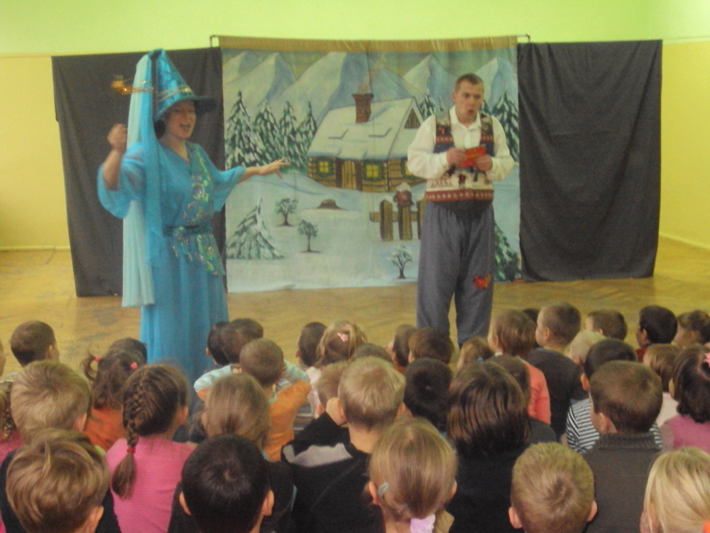 Już 3 grudnia, dzieci ze Szkół Podstawowych w Pisarzowicach, Mrozowie i Lutyni obejrzały „Królową Śniegu". Natomiast 9 grudnia najmłodsi uczniowie Zespołu Szkół w Miękini mieli okazję nie tylko zobaczyć ale również wziąć aktywny udział w spektaklach „Zaczarowany Młynek" i „Królowa Śniegu". W każdym z wystawianych miejsc, barwny , interaktywny spektakl z pięknymi strojami i oryginalną muzyką zachwycił wszystkich widzów.