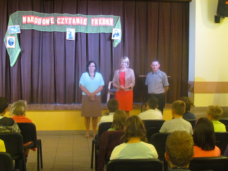 Serdecznie dziękujemy za przybycie Pani Małgorzacie Dyrdzie – Sekretarz Gminy Miękinia, Pani Zofii Miciak – Dyrektor Zespołu Szkół w Miękini, Pani Ewie Szymak – Dyrektor Publicznego Gimnazjum w Miękini oraz Pani Małgorzacie Biszczak-Kunik – Dyrektor Szkoły Podstawowej w Miękini. Pragniemy również podziękować nauczycielom, którzy wspaniale przygotowali uczniów do czytania utworów Fredry, Pani Aleksandrze Dzierza, Pani Elżbiecie Piasta oraz Pani Paulinie Matkowskiej. Podziękowania kierujemy również do Pani Rozalii Jędruszek – Bibliotekarz Szkolnej, która wraz z nauczycielami przygotowywała uczniów oraz wraz ze mną dekorowała salę.
