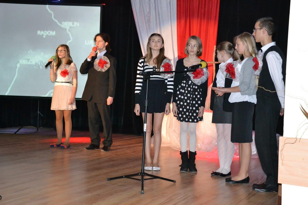 Dziękujemy naszym uczniom: Wiktorii Tomkowicz, Basi Ziębie, Wiktorii Partyce, Patrycji Kamińskiej, Darii Korkosz, Natalii Wielińskiej, Wiktorii Bisiorek, Marcie Śmiechowskiej, Dominikowi Zięcinie, Danielowi Garncarkowi, Norbertowi Kiejnie, Maćkowi Dubniańskiemu, Kamilowi Rępińskiemu i Krzysiowi Majcherek za piękne prezentacje artystyczne i patriotyczne zaangażowanie.