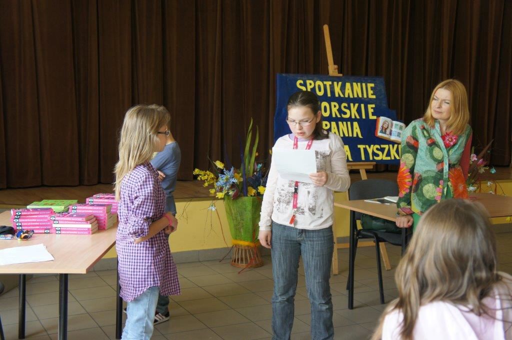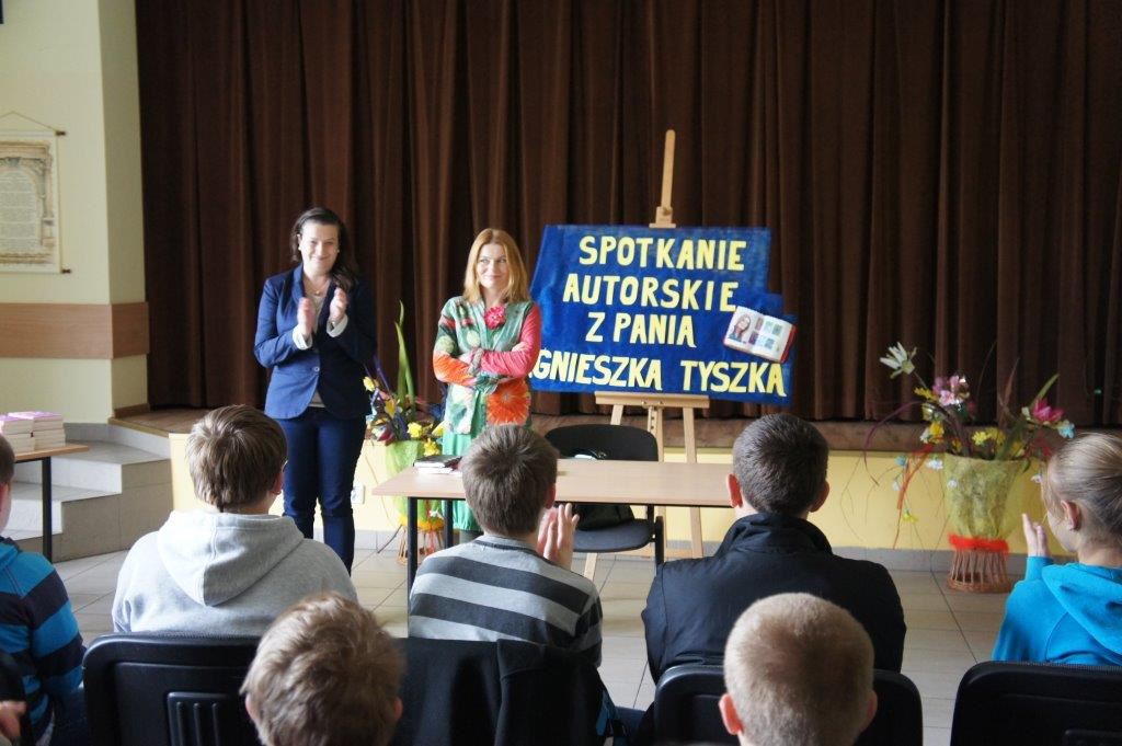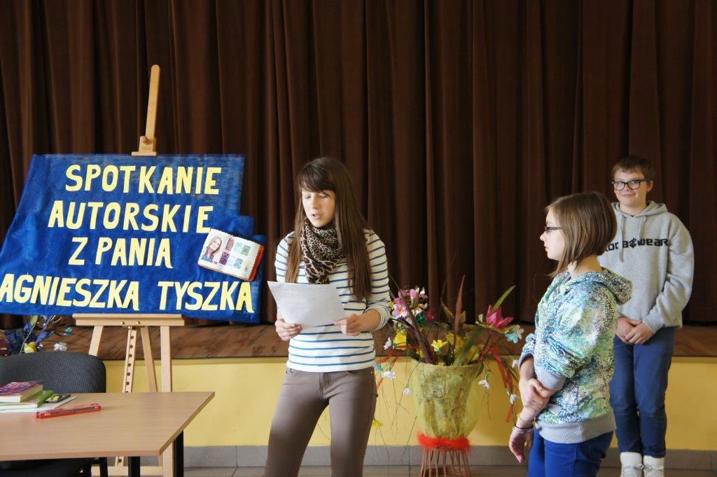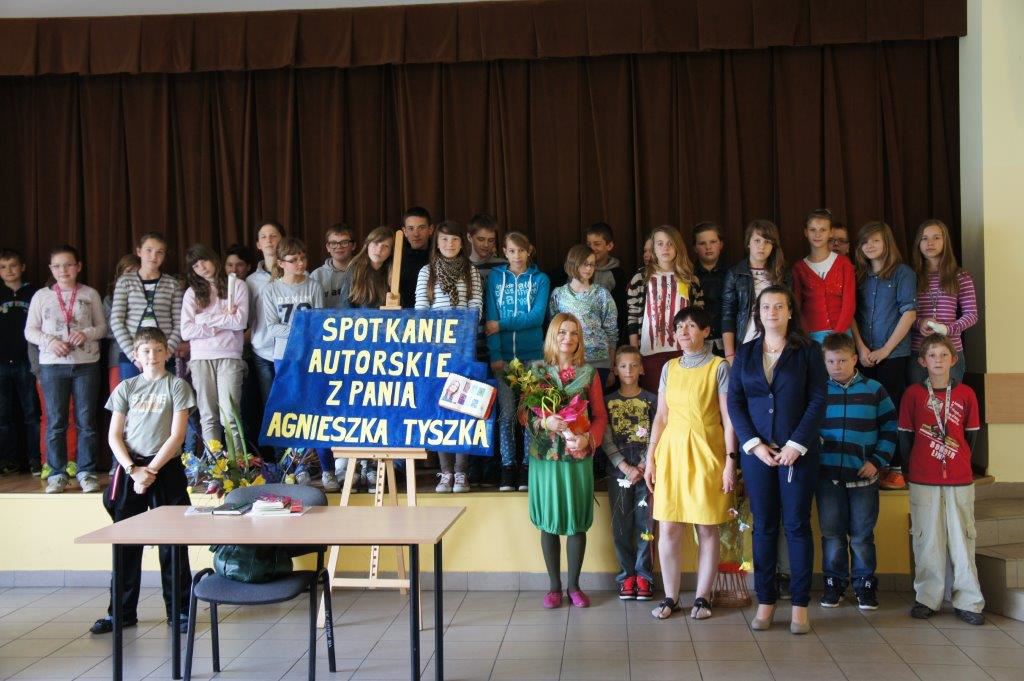 Podczas spotkania Pani Agnieszka zaprezentowała jedną ze swoich najnowszych książek „Kredens pod Grunwaldem”. Uczniowie poznali genezę powstania, jak też główne wątki przewijające się w powieści. Nie zabrakło też wspomnień z lat dziecinnych autorki. W trakcie spotkania uczniowie mieli możliwość sprawdzenia własnych umiejętności pisarskich, tworząc i prezentując krótkie scenariusze na zadane tematy. Pani Tyszka zachęciła dzieci do udziału w ogólnopolskim Konkursie Literackim „Szukamy Polskiego Szekspira”. Na zakończenie spotkania uczniowie mogli kupić książki Agnieszki Tyszki z autografem autorki, jak również pozować do pamiątkowego zdjęcia.