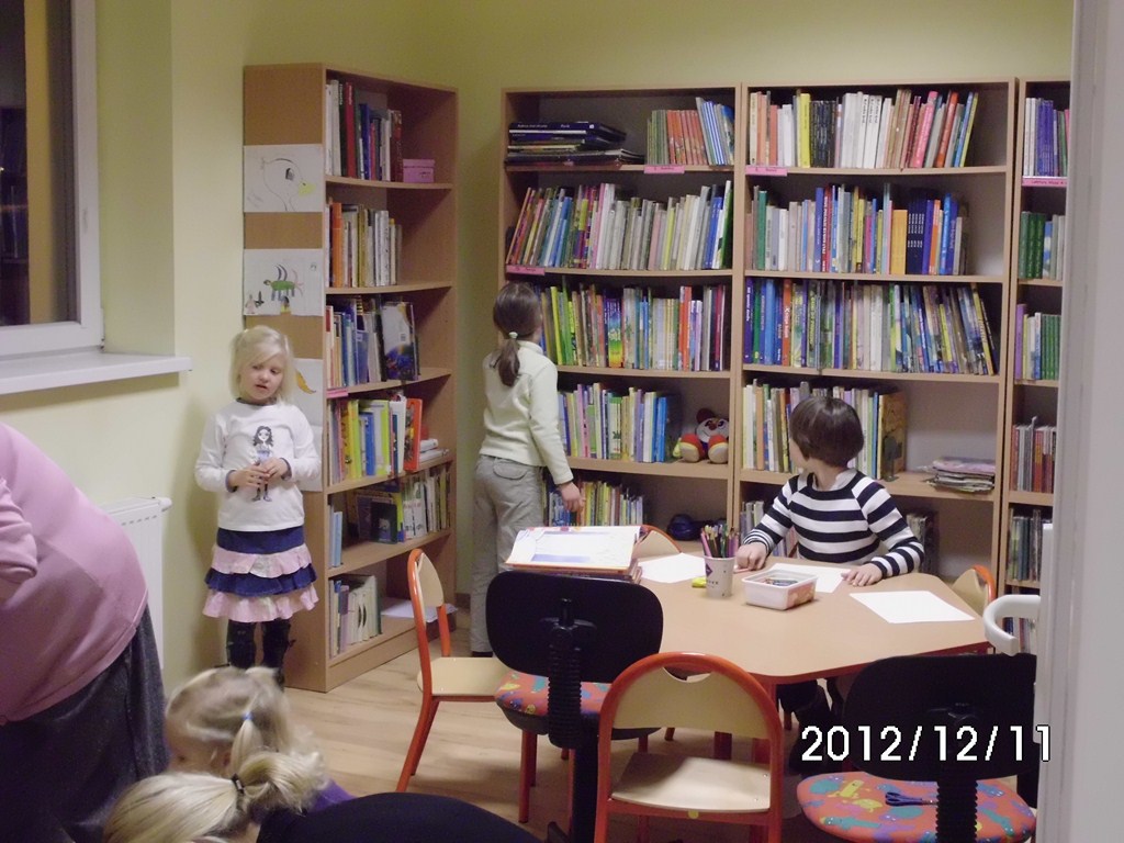 W dniu 11.12.2012 r. ( wtorek) w Bibliotece Gminnej w Miękini odbyło się spotkanie pn. „Czytanie dzieciom” powiązane tematyką z Bożym Narodzeniem i tradycjami tego Święta. Opiekunem spotkania była Pani Emilia Kutkiewicz. Dzieci słuchając opowieści wigilijnych malowały choinki, obrazki świąteczne a na koniec spotkania ubierały choinkę w Bibliotece.