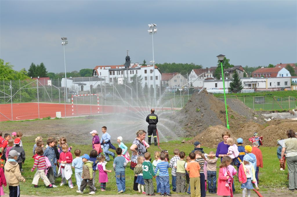 Na spotkanie z dziećmi strażacy przyjechali profesjonalnymi wozami strażackimi, które w najdrobniejszych szczegółach omówili. Dzieci miały okazje zobaczyć jak wygląda strój strażaka gotowego do akcji, każdy przedszkolak mógł założyć hełm strażacki. Zobaczyły również jak podczas akcji ratowniczej strażacy rozwijają węże oraz w jaki sposób gasi się pożary. Mali słuchacze mogli także samodzielnie potrzymać wąż do gaszenia pożarów. Główną atrakcją była mini jazda wozem strażackim z włączonym sygnałem. Na zakończenia dzieci zadawały pytania obdarowały Strażaków upominkami i same otrzymały słodycze, oraz zrobiły sobie wspólne zdjęcie na pamiątkę.