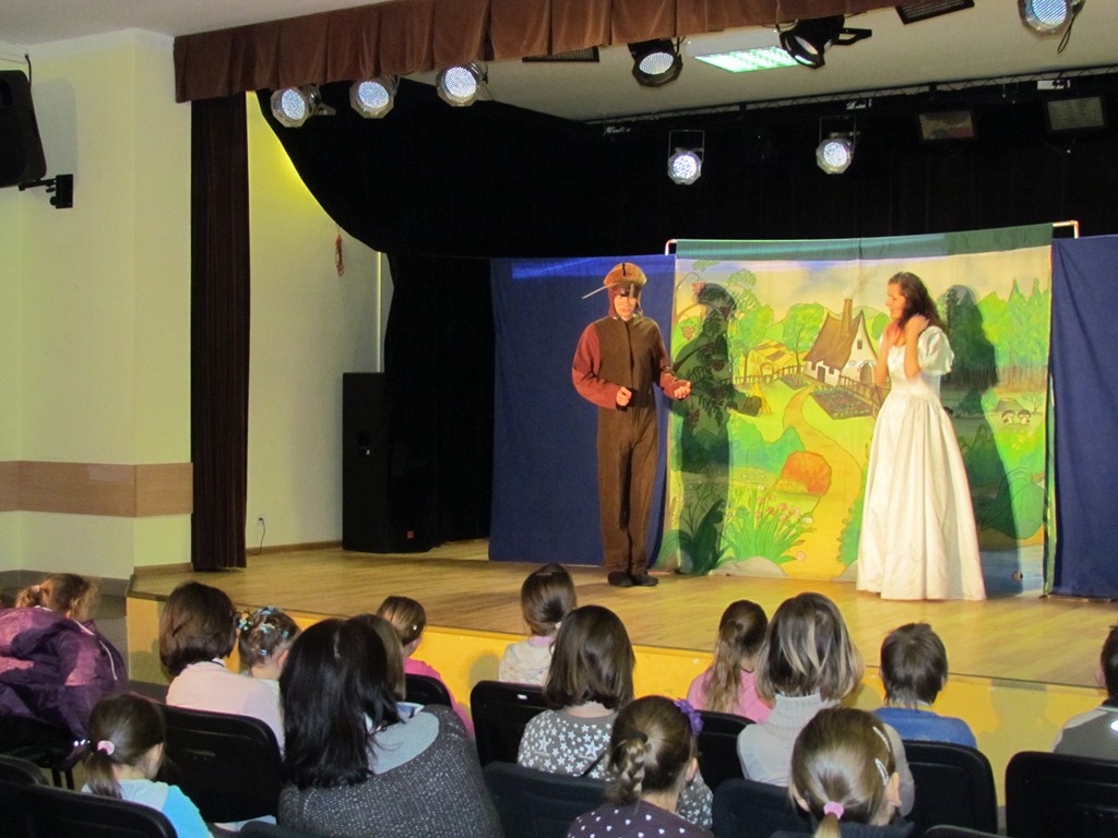 Do Sali widowiskowej Samorządowego Ośrodka Kultury przybyła grupa dzieci, która aktywnie uczestniczyła w spektaklu. Dzieci z zaciekawieniem wpatrywały się w aktorów a na zakończenie podziękowały brawami i uśmiechem.