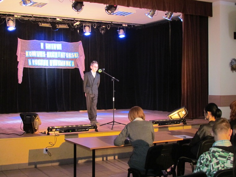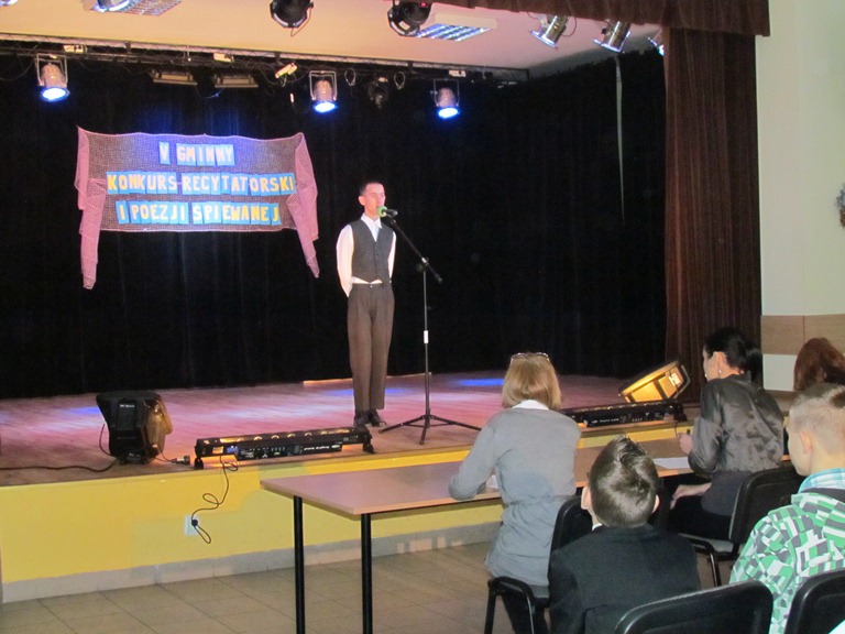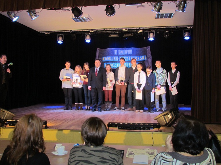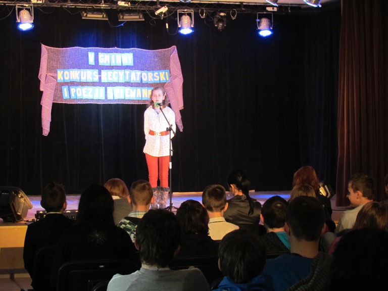 Wzięło w nim udział 9 uczniów z Publicznego Gimnazjum w Miękini oraz 2 uczniów z Publicznego Gimnazjum w Lutyni. Uczestnicy zaprezentowali własne interpretacje poezji i fragmentów prozy. Wystąpienia uczniów oceniało jury w składzie: p. Aleksandra Dzierza, p. Agnieszka Wawron, p. Dorota Piekarska, p. Ewa Szymak, p. Zofia Miciak. Podczas oceny brano pod uwagę dobór tekstu, opanowanie pamięciowe, interpretację i wrażenie artystyczne, jakie wywoływał recytator i wygłaszany przez niego utwór. Wszystkie wystąpienia zasługiwały na duże uznanie. Zaangażowanie uczniów w przygotowanie recytacji wybranego utworu przyniosło oczekiwane rezultaty i wpłynęło na wysoką jakość występów młodych recytatorów. Warto również podkreślić, że uczniowie wybierali różnorodne i ciekawe utwory.