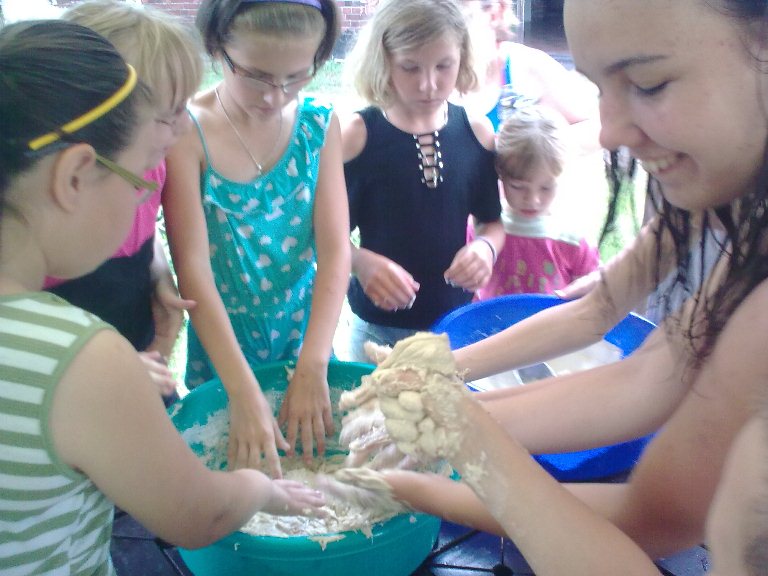 W trakcie warsztatów dzieci własnoręcznie przygotowały ciasto, uformowały bochenki chleba, które zostały upieczone w piecu chlebowym. Dodatkową atrakcją było pieczenie kiełbasek na grillu. Po czterogodzinnych zajęciach dzieci i młodzież z upieczonymi chlebami, które trochę się przypiekły ale wszystkim bardzo smakowały wróciły do swoich miejscowości. Zajęcia warsztatowe obserwował sołtys wsi Księginice Janusz Garder z żoną.