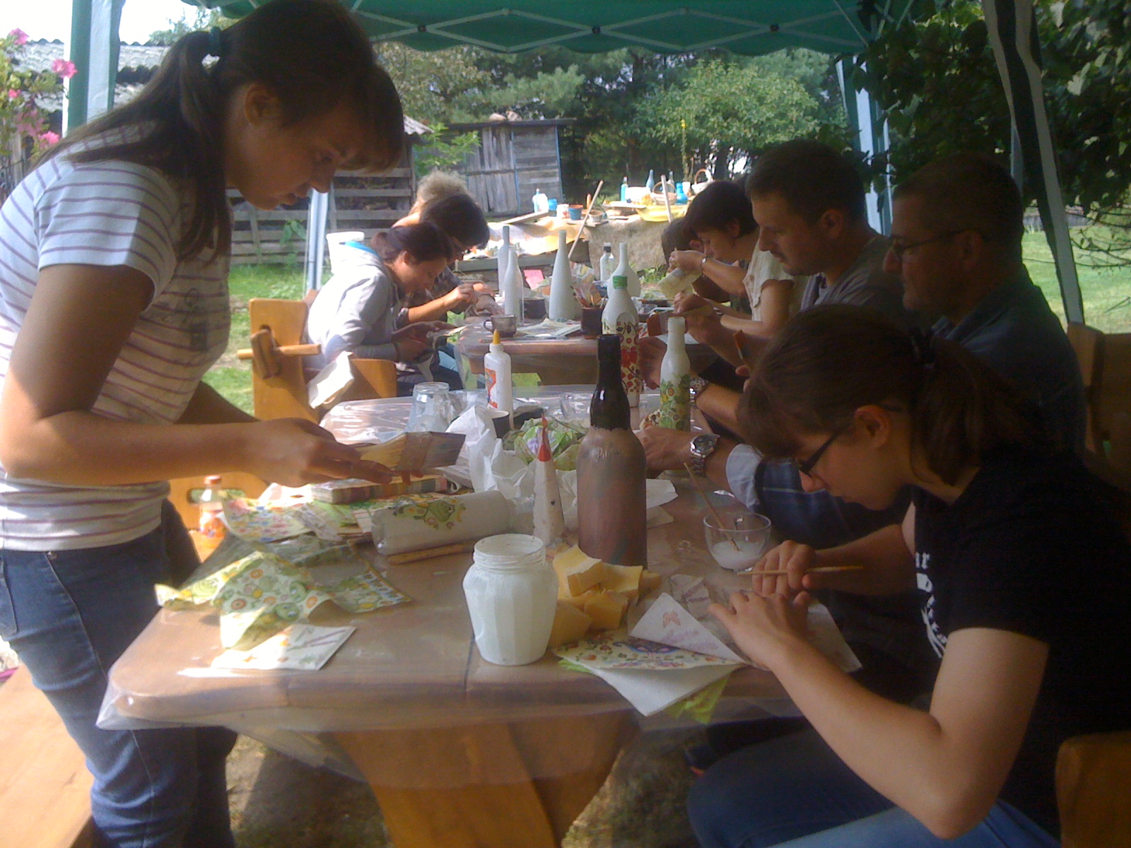 Pod koniec lipca i sierpnia dwa warsztaty ośmio godzinne dla animatorów przeprowadzone zostały przez Stowarzyszenie "Zaborową Krainę " w Ekomuzeum" Tradycyjnego Rolnictwa", warsztaty przeprowadzone były przez Beatę Pęcherek. Podczas warsztatów uczestnicy nauczyli się filcowania na mokro i sucho oraz różnych technik decoupage.