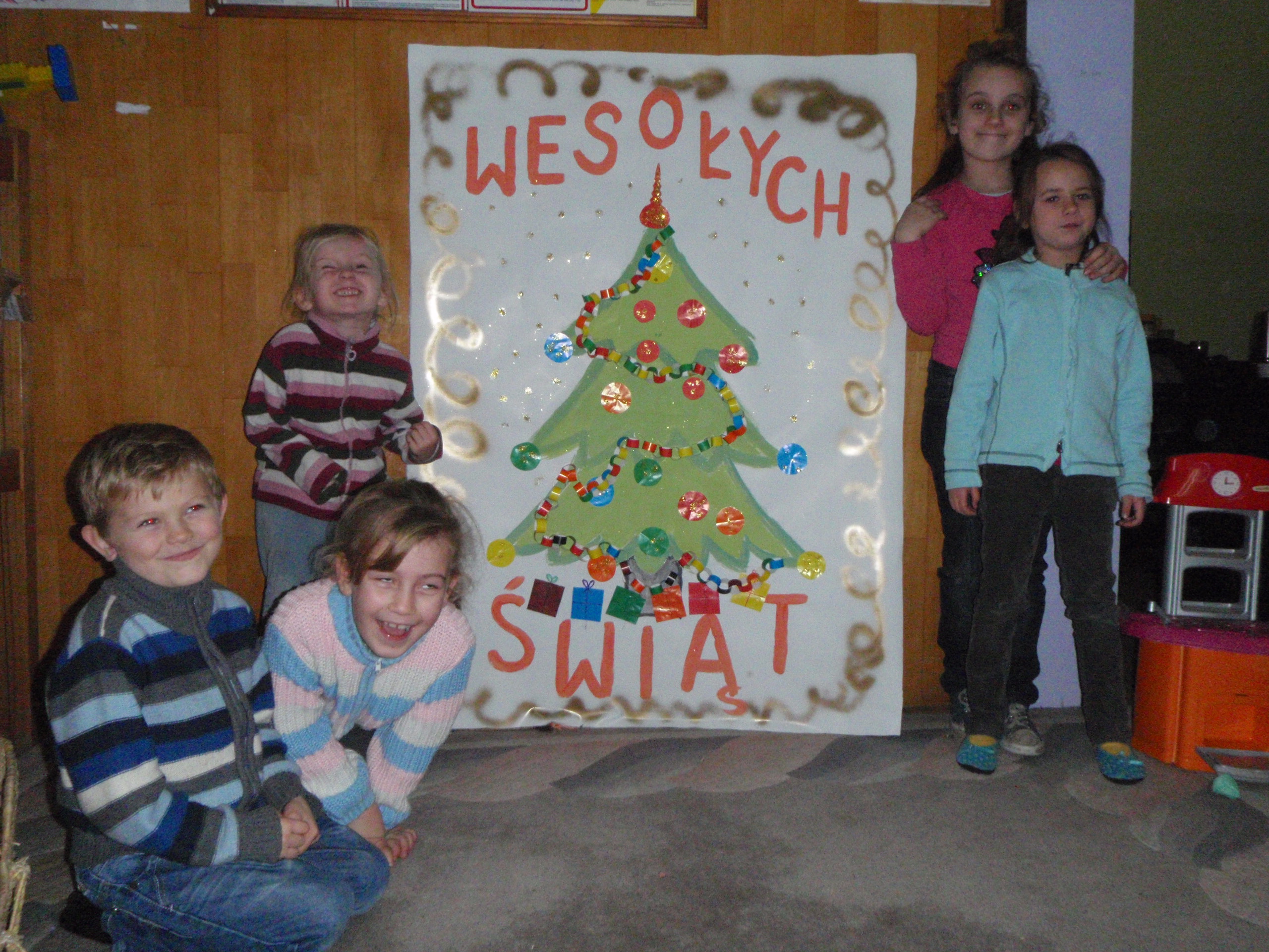 Podczas zajęć świetlicowych dzieci oraz młodzież wykonały znacznych rozmiarów kartkę świąteczną, która będzie stanowiła ozdobę świetlicy. Przy tej okazji składają najserdeczniejsze życzenia: pogodnych oraz spokojnych Świąt Bożego Narodzenia wszystkim mieszkańcom Gminy.