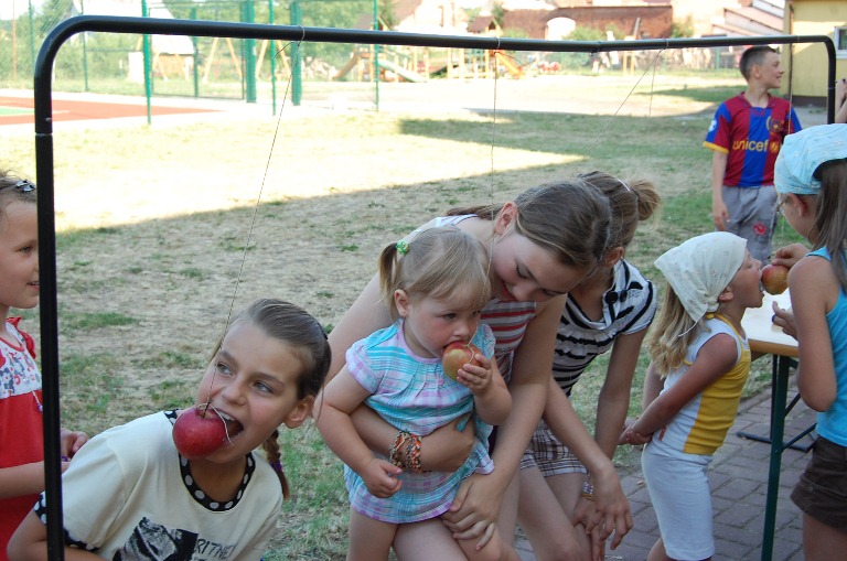 Każde dziecko, miało możliwość uczestnictwa w przygotowanych konkursach i zabawach. Najwięcej śmiechu i zabawy przysporzyły konkurencje: „Bieg w parach" i „Karmienie kisielem". Przy tych konkurencjach, jak zresztą przy każdej, dzieci świetnie się bawiły. Pogoda była wspaniała, wszystkim dopisywały świetne humory. Po każdej konkurencji wszystkie dzieciaki były obdarowywane upominkami.