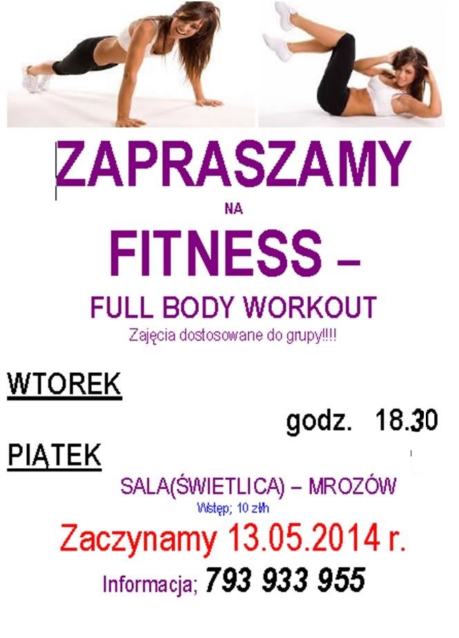 W każdy wtorek i piątek zapraszamy na zajęcie fitness do świetlicy w Mrozowie.